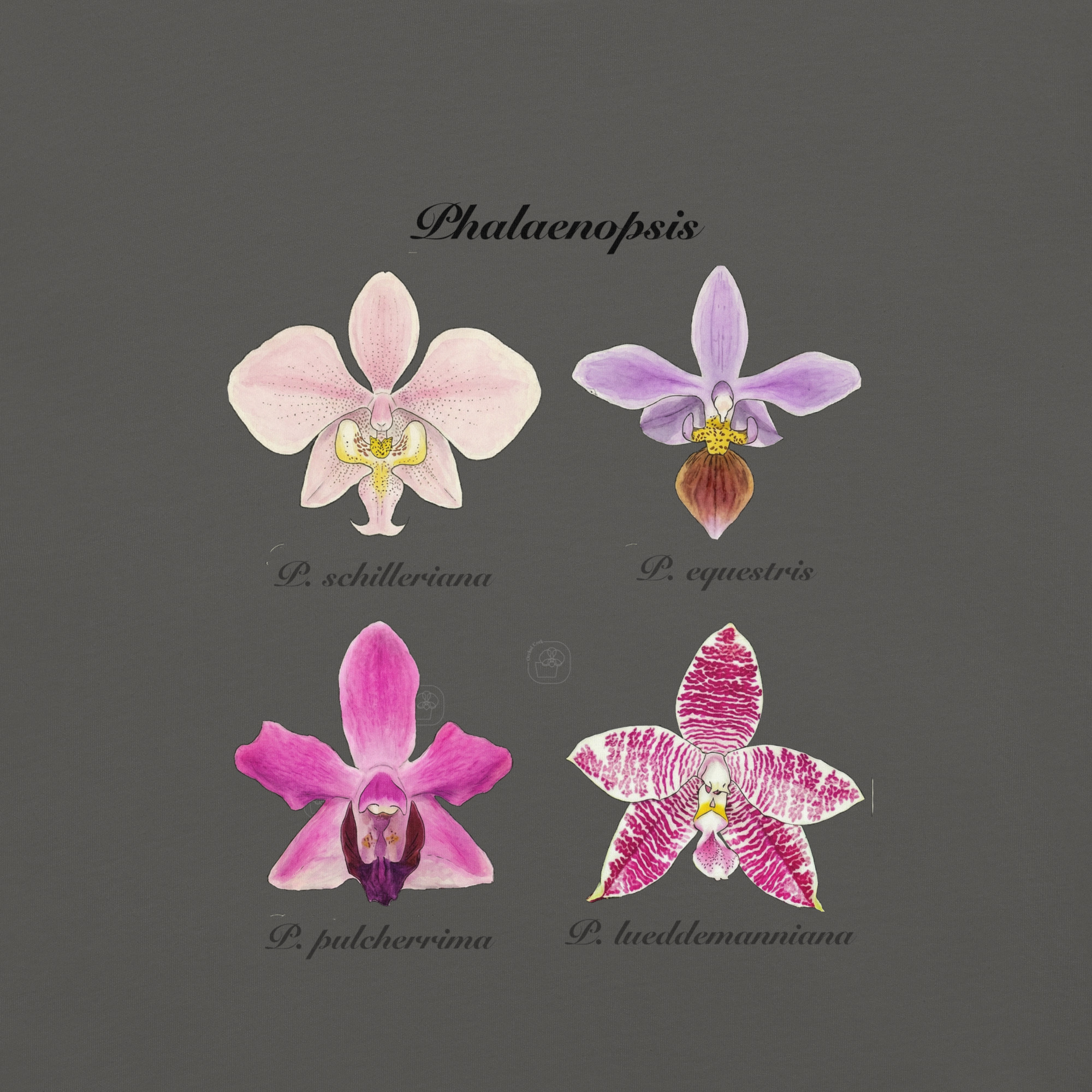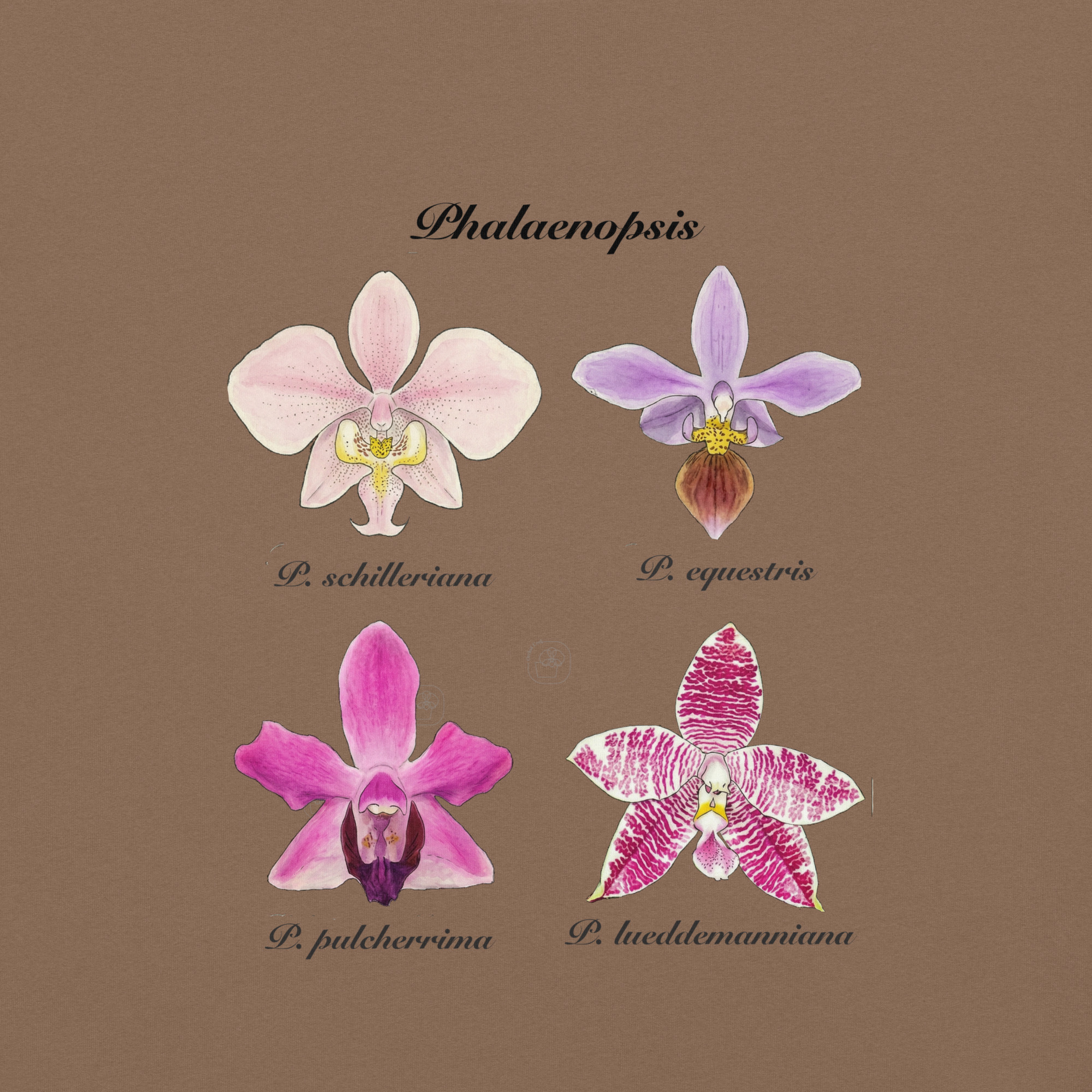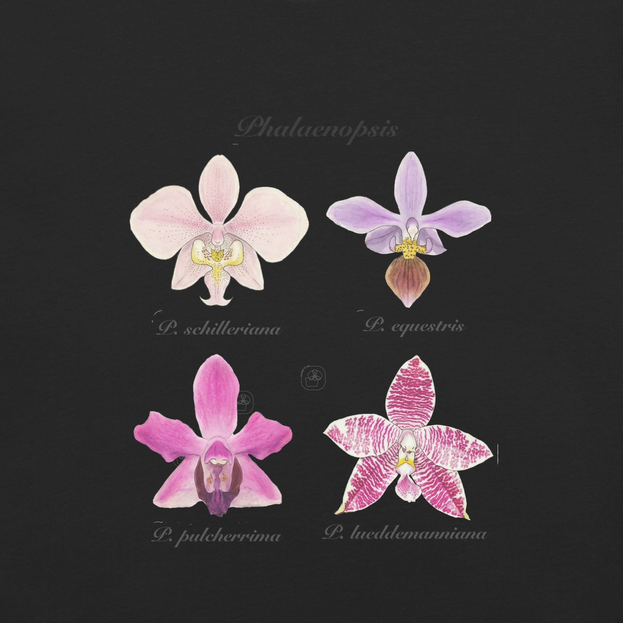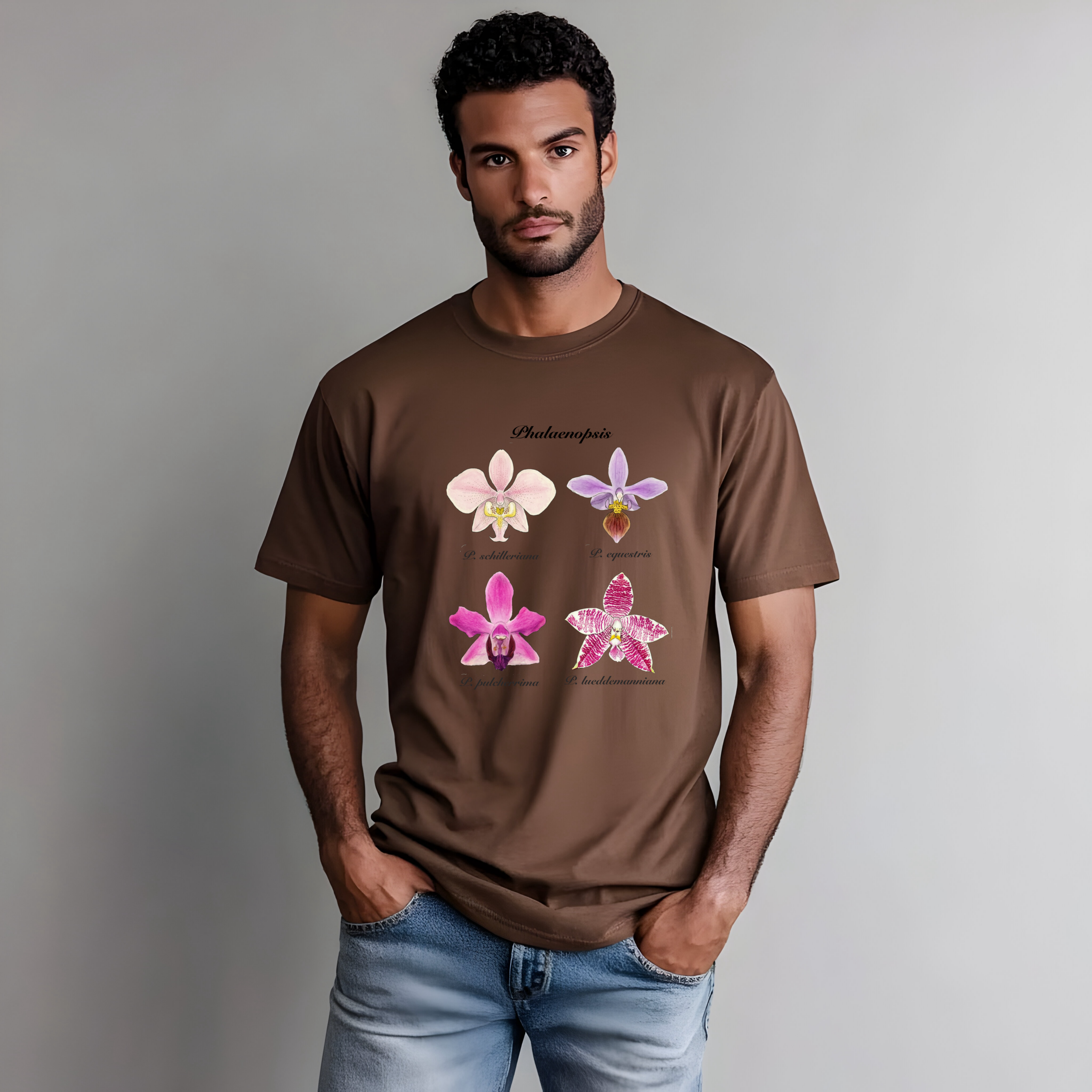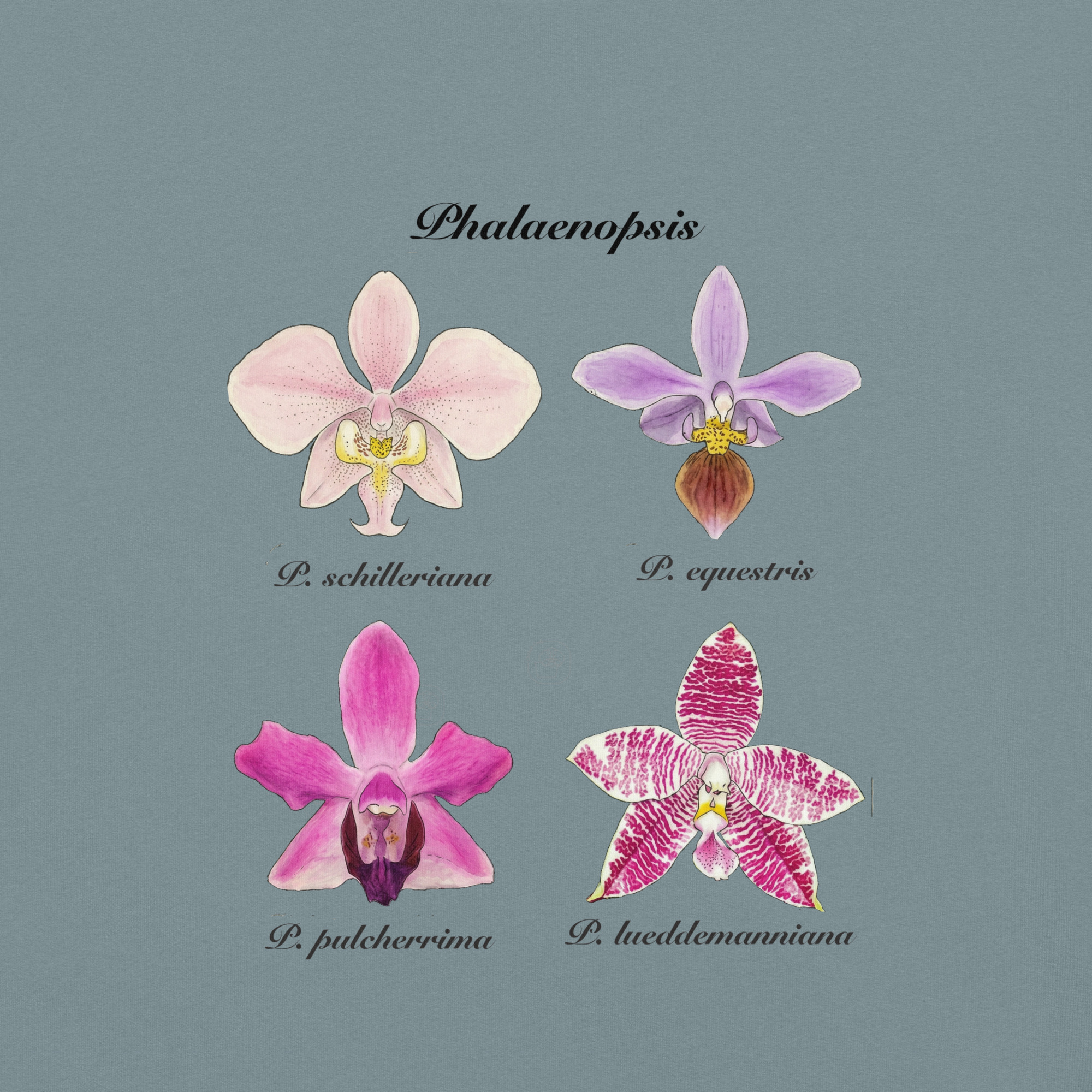 This t-shirt features a detailed illustration of Paphiopedilum spp, inspired by 19th-century scientific botanical plates: clear compositions, precise linework, and a naturalistic aesthetic focused on the real structure of the plant.