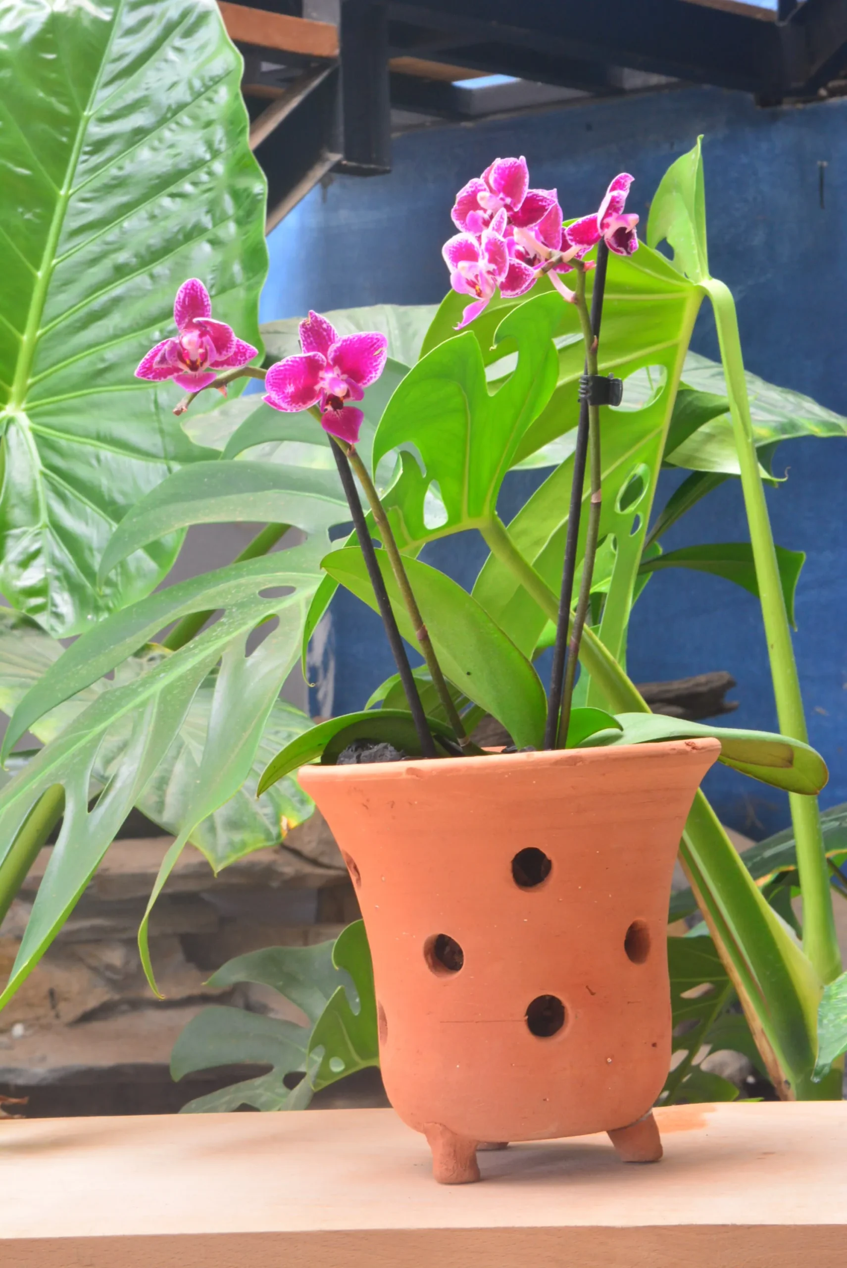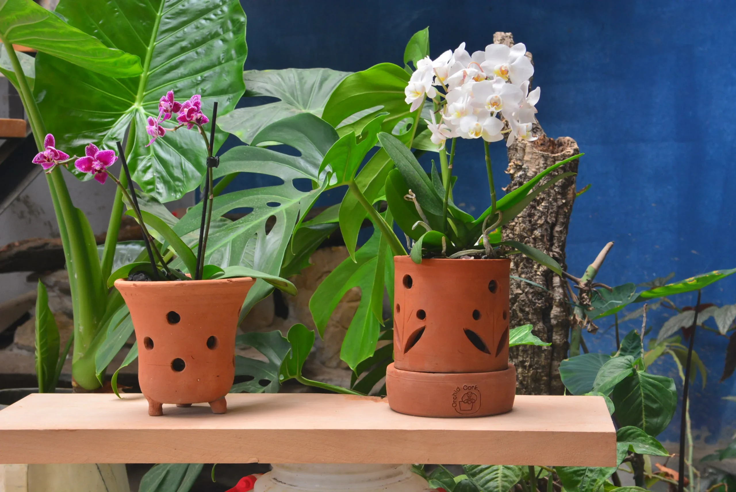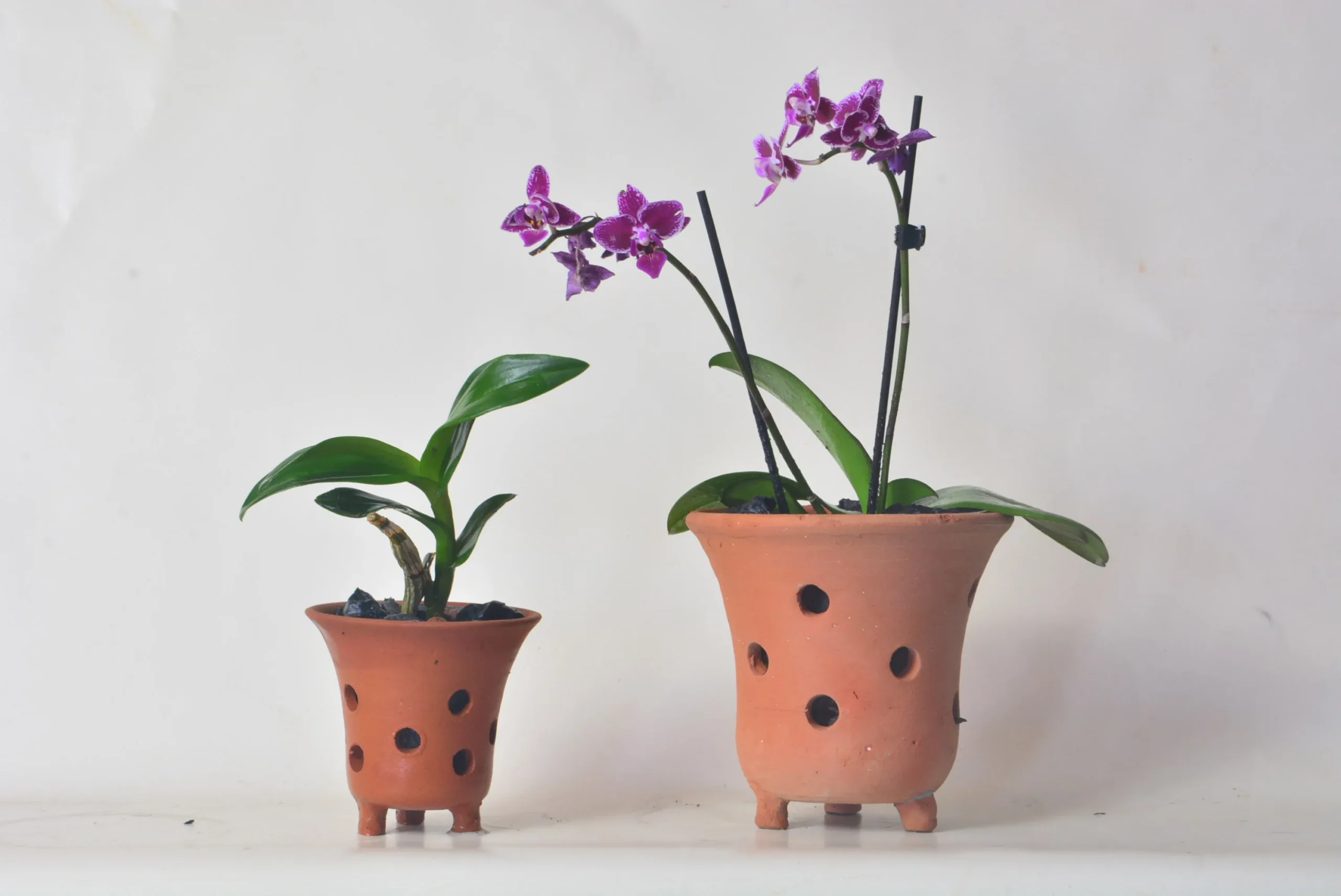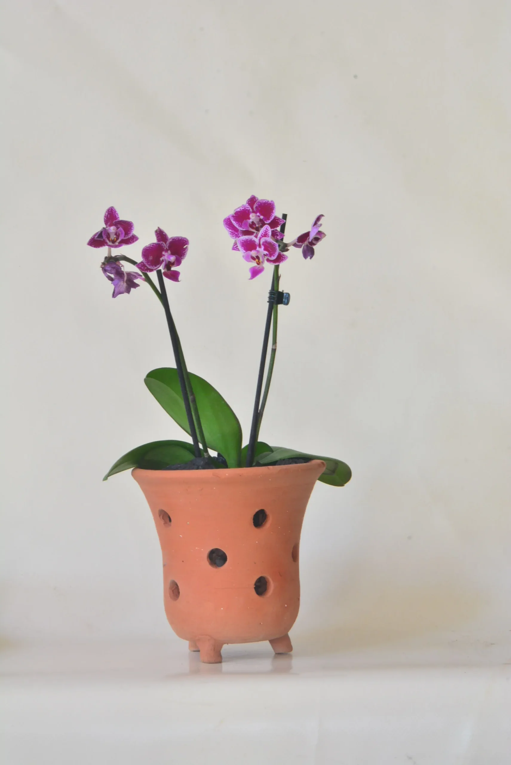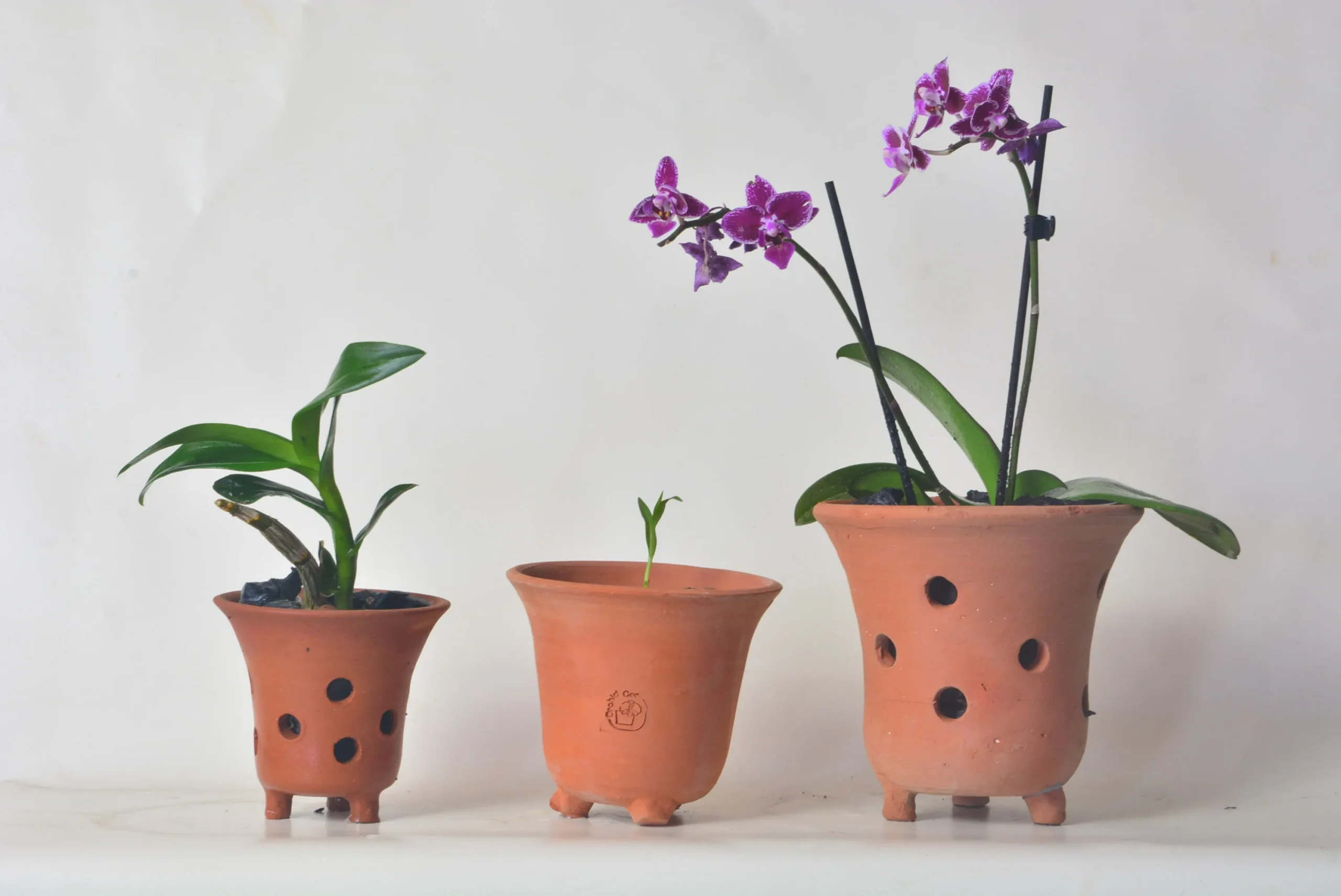 These handmade unglazed terracotta orchid pots combine three essential design elements that address the primary causes of root failure in orchid cultivation: inadequate drainage, insufficient airflow, and moisture retention around the root zone. Unlike conventional containers that prioritize aesthetic appeal, these breathable terracotta pots for orchids are engineered to replicate the natural conditions epiphytic orchids require for vigorous root development.